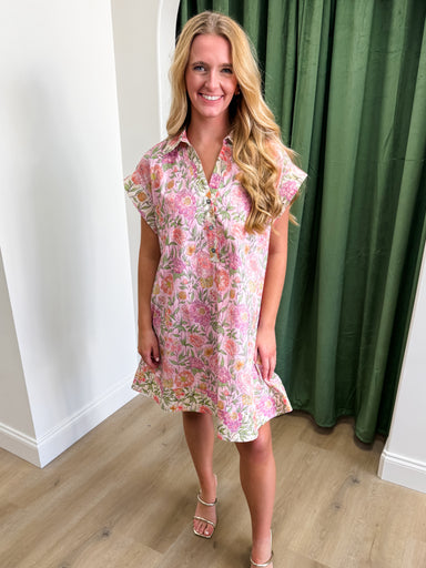 Celebrate the beauty of nature in the Chasing the Blooms Dress. This enchanting piece captures the essence of a garden in full bloom with its fresh...