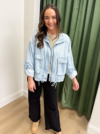 Classic meets cool! This versatile denim jacket from RISEN is a must-have layering piece for every wardrobe.Features: Timeless denim jacket style P...
