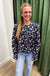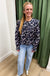 Floral printed long sleeve peter pan collar with ruffle detail and front self bow tie blouse top.